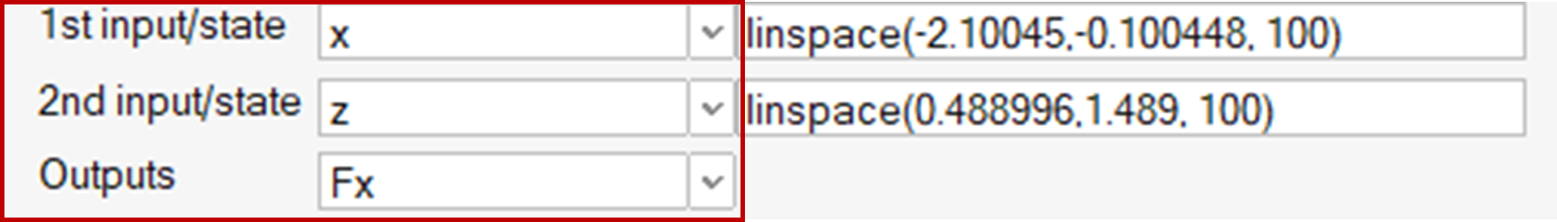 Select the 1st and 2nd inputs from the Inputs/States menu for the x-axis,