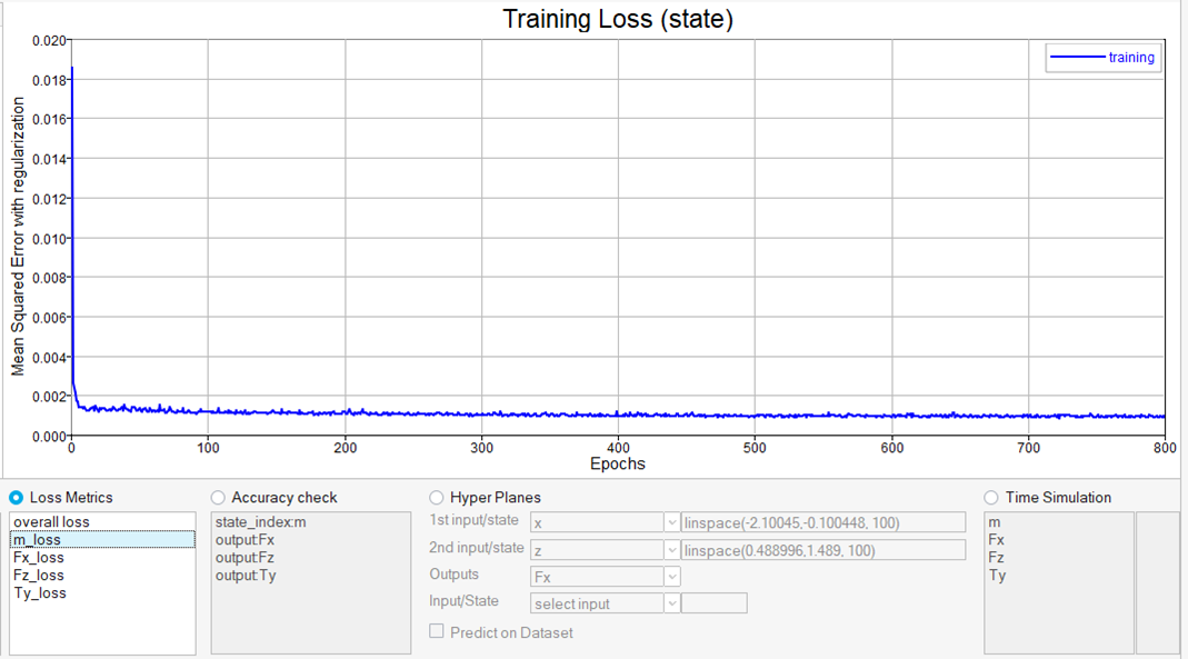 The data also shows the training/validation loss of each single output or higher-order state variable, such as velocity in this case.