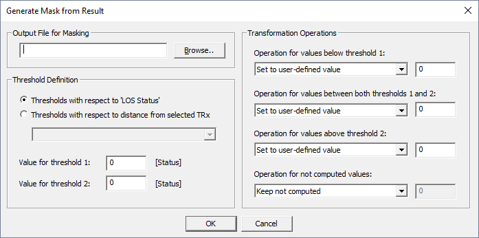 Arbitrary result files can be masked with a (0/1) result mask, a LOS mask or a clutter / morpho class mask. Click and select a mask option.