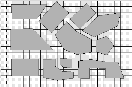 To accelerate the process of ray pathfinding, it is possible to determine in a first step the coverage (received power or field strength) of a considered area with a reduced resolution, thus for a grid of pixels where, for example, every second pixel is calculated. After this, the prediction values for the remaining pixels can be determined by spatial filtering (averaging) over the predicted grid. To reduce the loss of accuracy, it is important that pixels which are close to buildings calculated in the first step because of the expected changes by shadowing. In contrary to this there are no problems when using this algorithm for open areas. This approach leads to an acceleration factor about two if every second pixel is calculated in the first step (see Figure 1).
