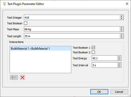 - The Test Plugin Parameter Editor dialog box corresponds with the