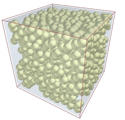 Note: The Volume Packing tool does not calculate forces based on overlaps, and creating material with very high overlaps could lead to a particle explosion once the forces are calculated in the Physics model.Figure 1. Volume packing with 70% volume fraction