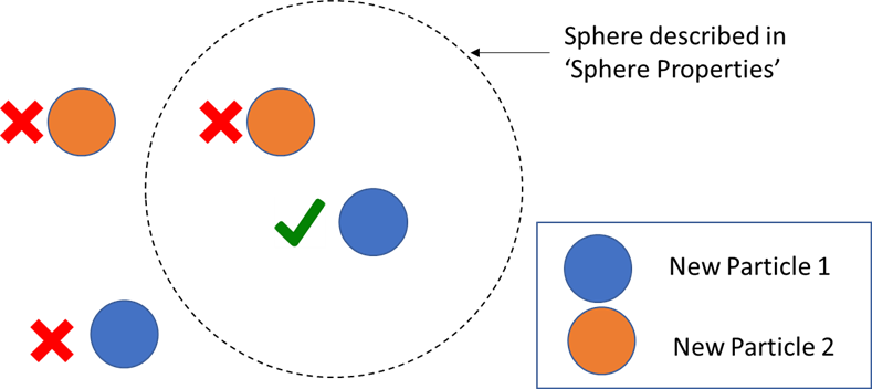 In this example, the particle of type New Particle 1 inside the described sphere is