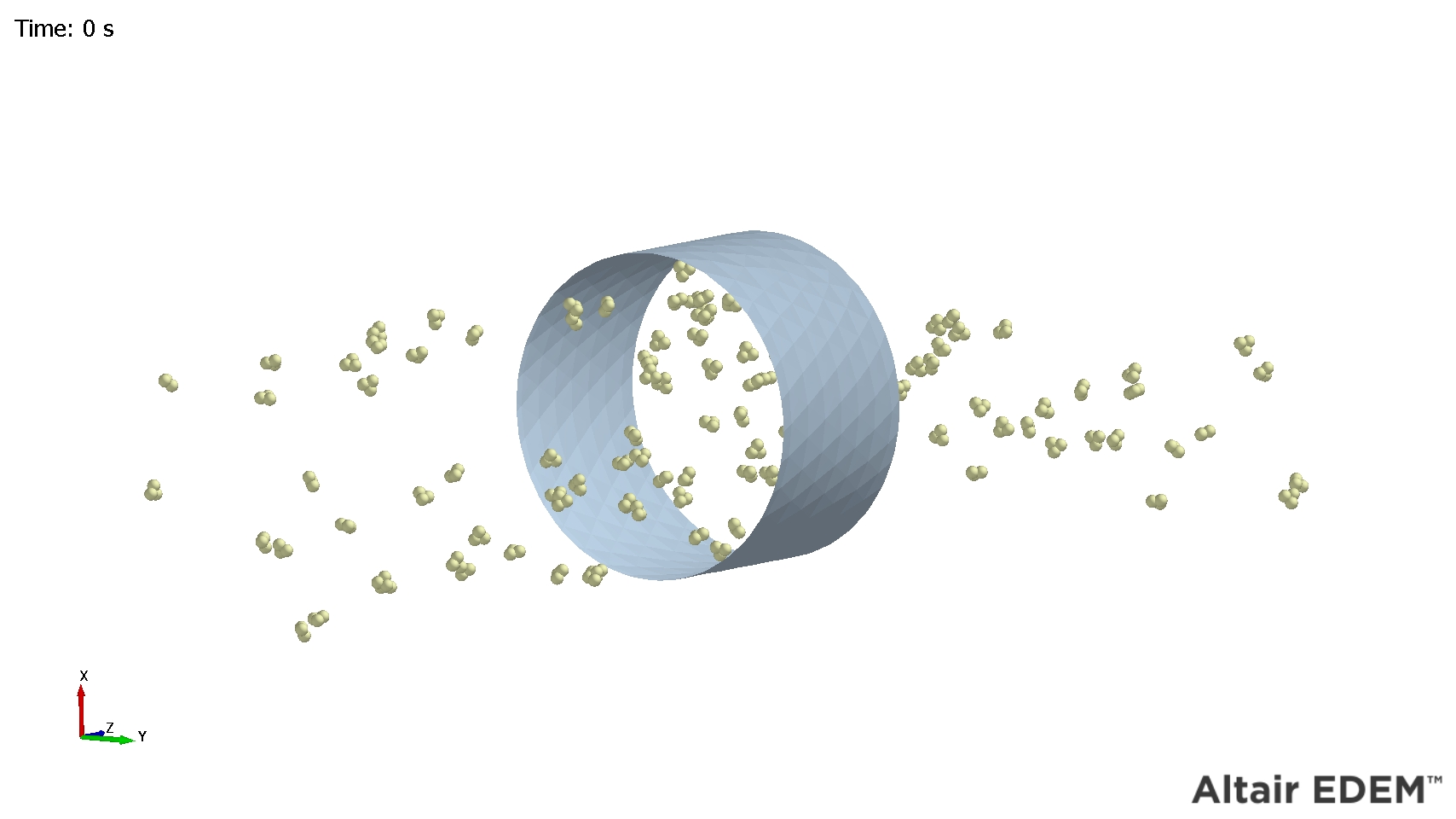 Optionally, select an Element checkbox to remove it from the group. The following figure shows a model of a pipe where a Geometry has been included in a slice and particles have been excluded from the slice: