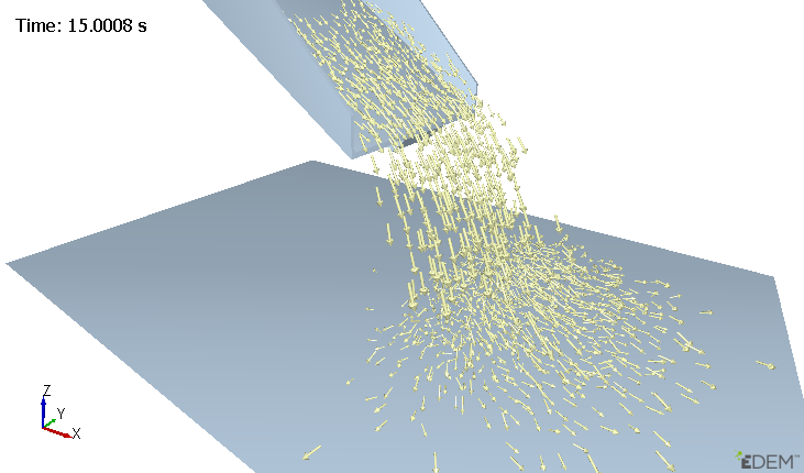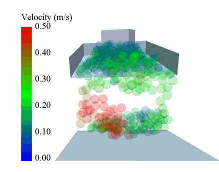 - Color by: AttributeAllows you to color any particle of the model with a particular attribute. The following image shows all the particles colored by velocity.