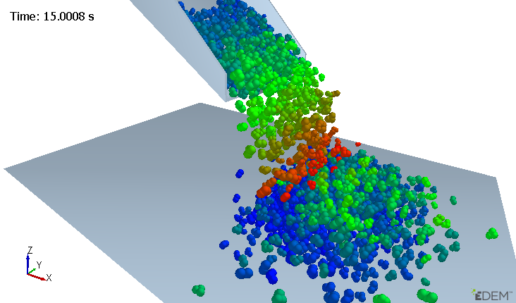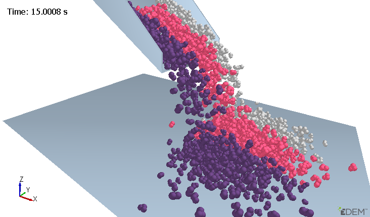 Color: Select the color from the dropdown list. Component: Select the component from the dropdown list. Smooth Colors Select the checkbox to enhance the images and even out the background color of an image. Log Scale Select to scale the coloring of particle attributes logarithmically for better color distribution. You can also change the coloring from linear to logarithmic, and is applicable only for particle Mass and Volume. Levels Select the number of color levels used in the color grading from the dropdown list. Max Color: Select the color that the maximum attribute value will be displayed as from the dropdown list. Mid Color: Select the color that the middle attribute value will be displayed in from the dropdown list. Min Color: Select the color that the minimum attribute value will be displayed in from the dropdown list. Min Value: Specify the value at which the Min Color will be displayed. All particles with attribute values lower than this value will be displayed using the Min Color. Auto Update Select the checkbox to automatically update this value to be the same as the minimum value found in the simulation at this Time Step. Max Value: Specify the value at which the Max Color will be displayed. All particles with attribute values greater than this value will be displayed using the Max Color. Auto Update Select the checkbox to automatically update this value to be the same as the maximum value found in the simulation at this Time Step. Hide Out of Bounds Select the checkbox to hide the particles that fall outside of the specified min and max values. Show Legend Select the checkbox to show or hide the legend. Position Legend Select the checkbox to show or hide the position of the legend. Legend Options... Click to set the legend options such as the width, height, intervals, alignment, decimal, title, and text color and then click OK. Table 1. Coloring Attributes Element Attribute Component Particle Angular Velocity Magnitude, X, Y, Z Axial Stress Magnitude, X, Y, Z Compressive Force N/A Coordination Number N/A Diameter (Multi-Sphere) N/A Moment of Inertia Magnitude, X, Y, Z Kinetic Energy N/A Length. (Polyhedral) N/A Mass N/A Moment of Inertia Magnitude, X, Y, Z Position X, Y, Z Potential Energy N/A Residence Time N/A Rotational Kinetic Energy N/A Stress Tensor XX, XY, XZ, YX, YY, YZ, ZX, ZY, ZZ Torque Magnitude, X, Y, Z Total Energy N/A Total Force Magnitude, X, Y, Z Velocity Magnitude, X, Y, Z Volume N/A Von Mises N/A Custom property Depends on the number of elements. Frozen 1 - Frozen, 0 - Not frozen - Color by: Uniform