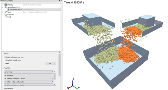 selection options such as Grid Bin Group, Geometry Bin, and so on, the particles or