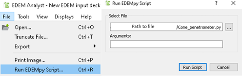 Figure 4. Executing the Cone Penetrometer Analyst EDEMpy script