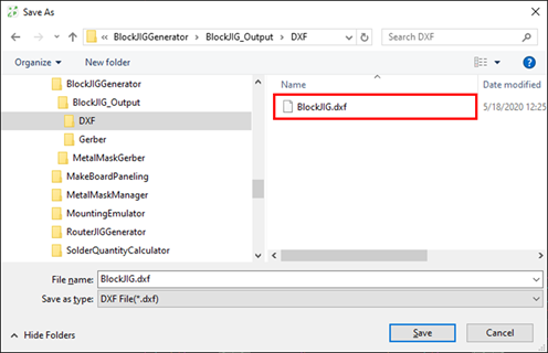 Export JIG Data Export Gerber: The generated block JIG data is separated for each layer and exported as Gerber format data.Figure 1. Export DXF: The generated block JIG data is exported as DXF format data.Figure 2.