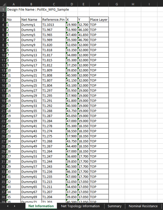 Once the PCB design generation is completed, review the results of Net, Net Topology, Summary, and Nominal Resistance.