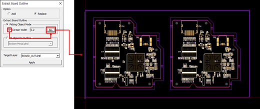 • Picking Object Mode: Extract the Board Outline by selecting directly from the Gerber object.