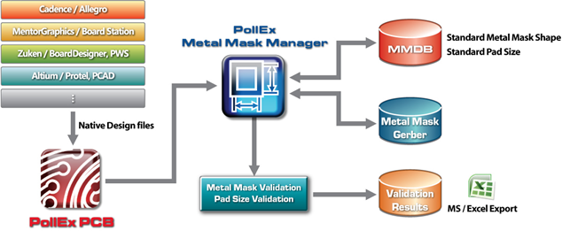 You can change design’s metal mask according to standard metal mask. Depending on manufacturing process and products, you can manage several different metal mask databases. It means, you can import standard metal mask after reading design and check different metal masks among design, Gerber, and standard metal mask.