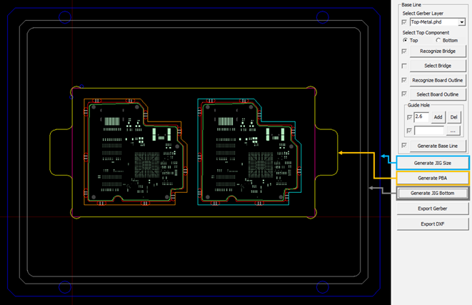 - Generate JIG Size: Router JIG outline and fixing hole are generated with a blue line.