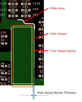- The minimum separation distance between Hole Variant area and Allowed Component is 13mm.