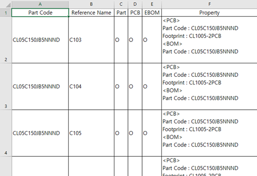 - Part: Display whether the part name on the BOM and PCB data is matched based on the reference name.