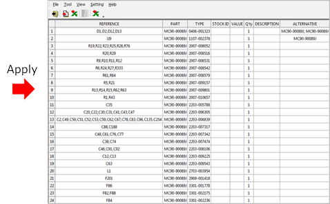 - In case of mounting verification, set the reformat to get only parts for mounting verification. The default is set to Set as Valid Parameter, so only the items which have a value matched in the defined column remain. If you select Set as Alternative the presence or absence of alternative parts are confirmed. Alternative parts are looking for a reference name like this part. You can see the part name of alternative parts.