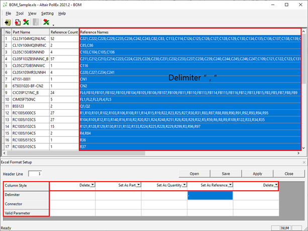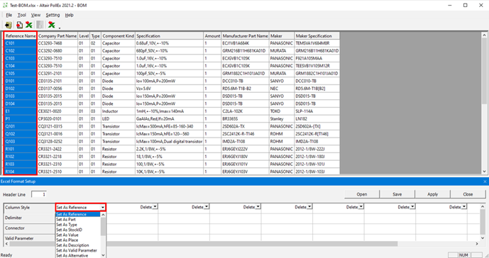 The rules of generating the BOM data for each user or company is different. PollEx CP has been set based on the Ref Name for comparison of PCB / LOGIC / BOM. You can use the PollEx CP by changing the Excel Format in the Excel Format Setup dialog.