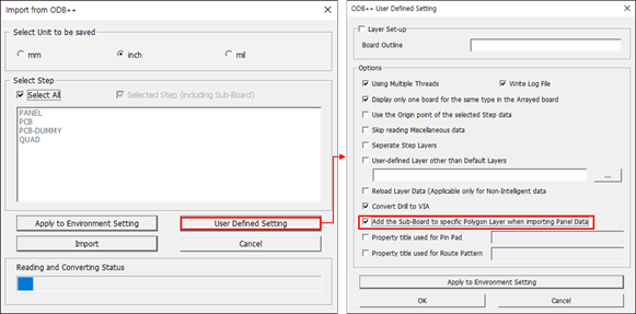 User Defined Settings in the Import from ODB++