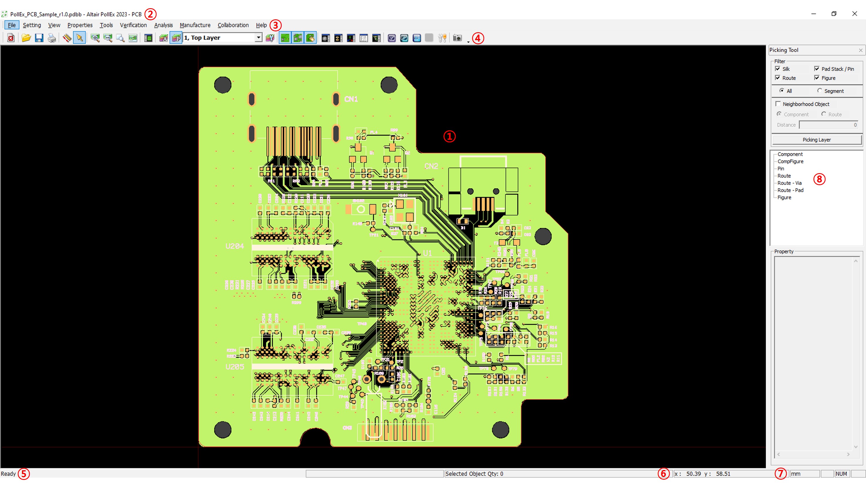 - At the top of main frame window, you can see the version of PollEx PCB and active file name and path.