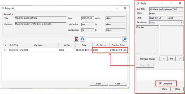 1st or 2nd level confirmation will be activated depend on the permission of each part.The Reply dialog opens. - Click Reply to write the content.