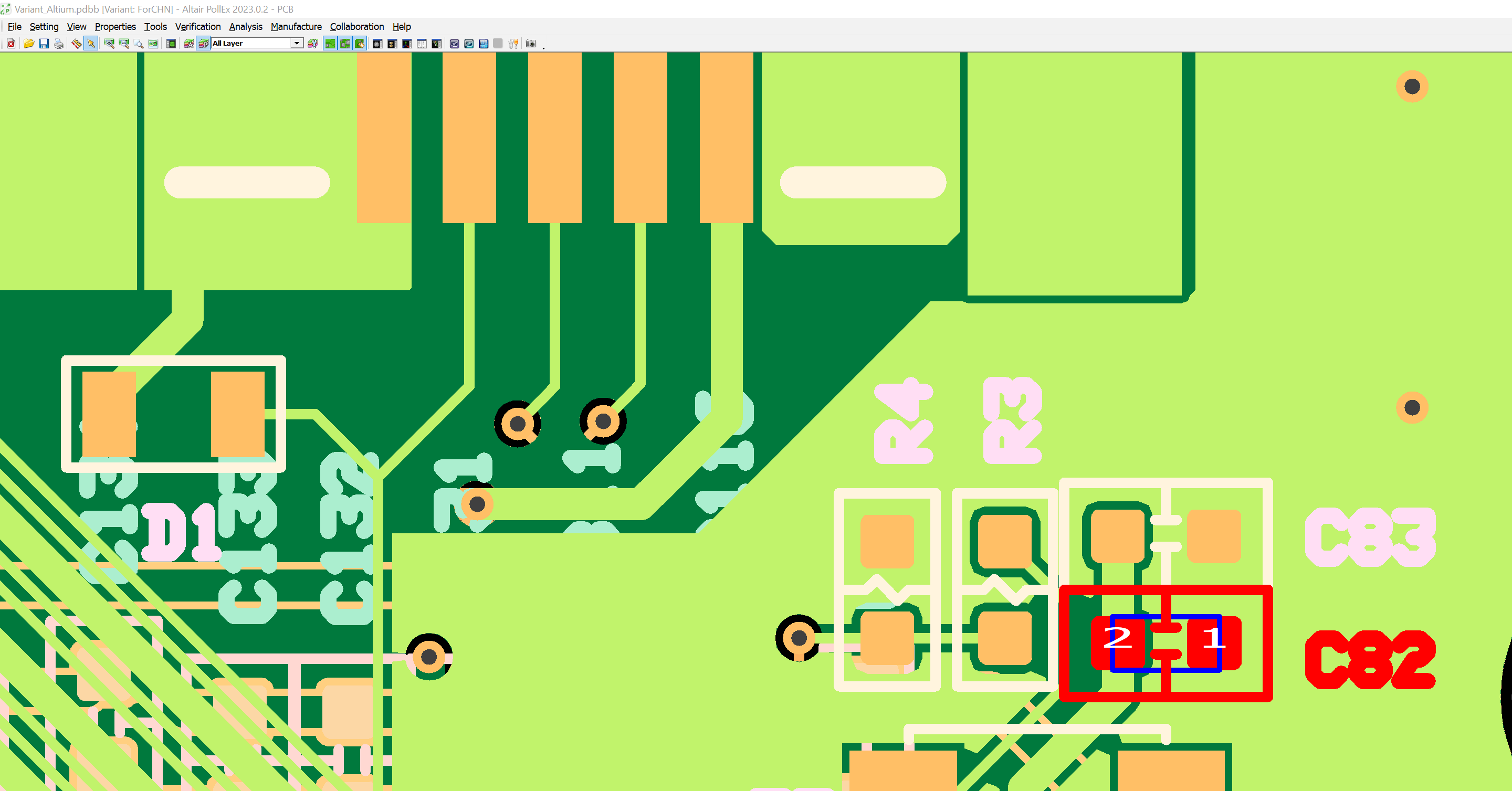 For variant with Part Name changed for components a Blue Outline is implemented and the components name in the reference list is highlighted Blue.Figure 3.