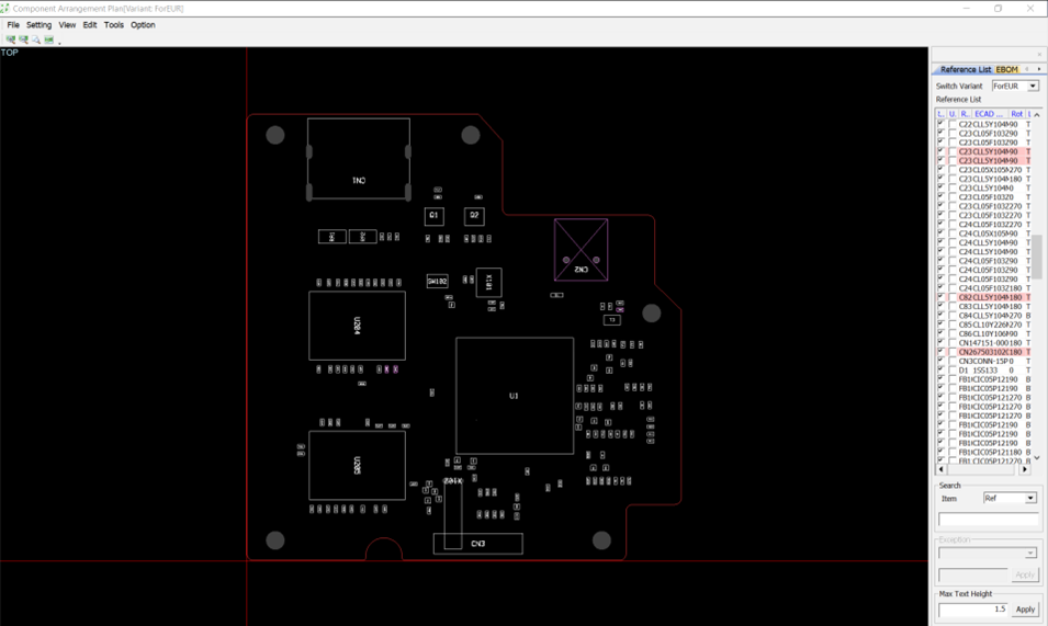 You can also view the variant list by selecting the variant from the SWITCH VARIANT selection box on the reference list.For variant with an NP status an X is displayed on the component and the components name in the reference list is highlighted with Red.Figure 2.