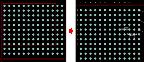 - Pins to be excluded are deselected by clicking the mouse individually in the selected area.