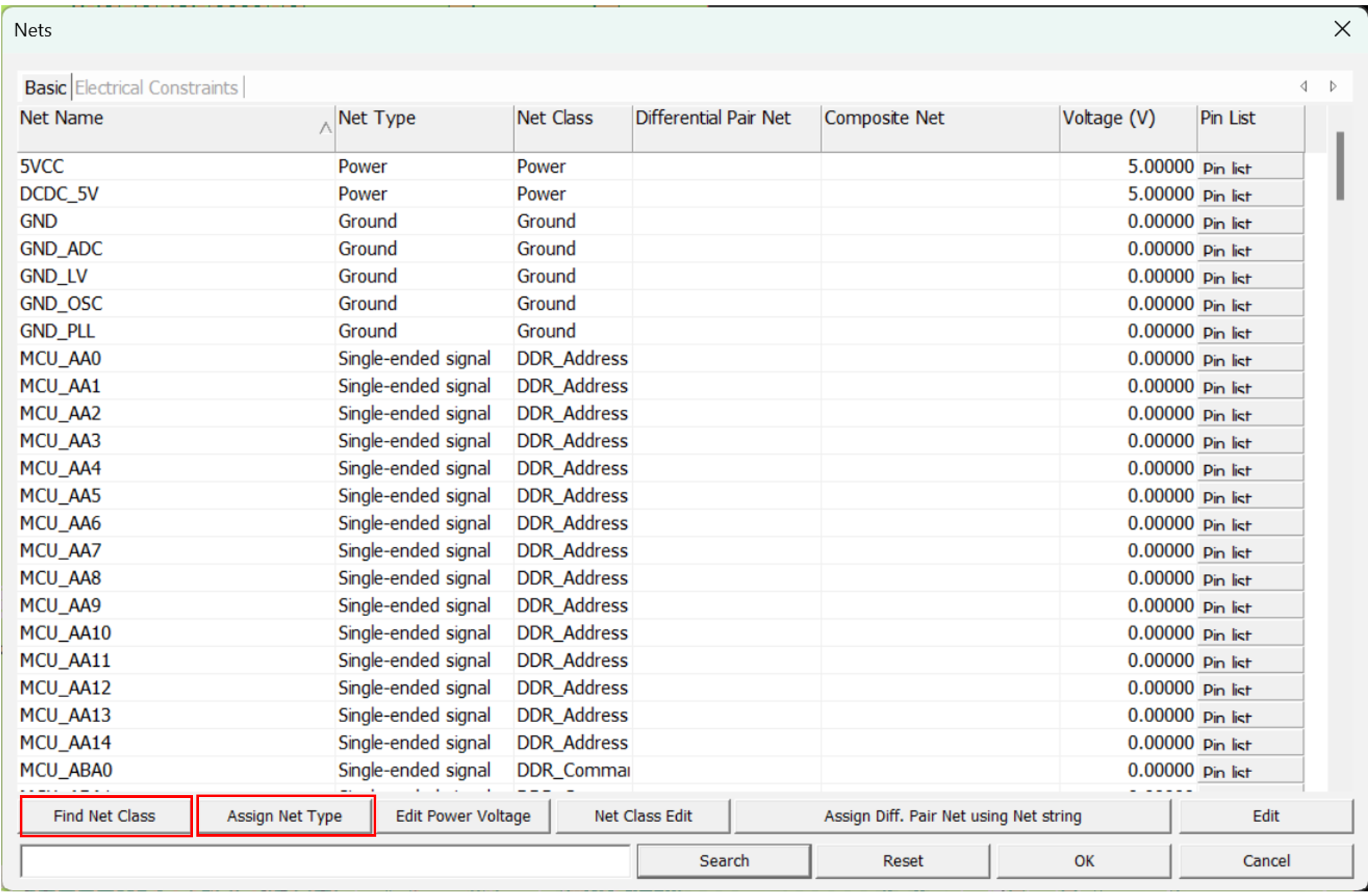 Power/Ground Nets: The voltage assigned to a Power or Ground net will