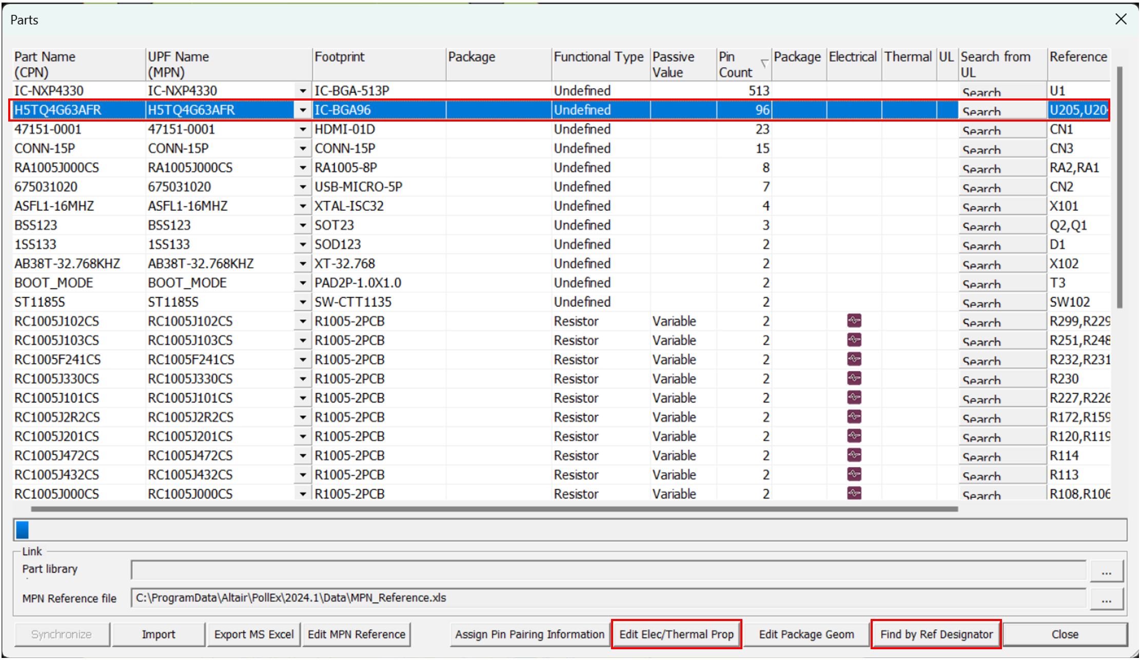 The Find Part by Reference Designator dialog opens.