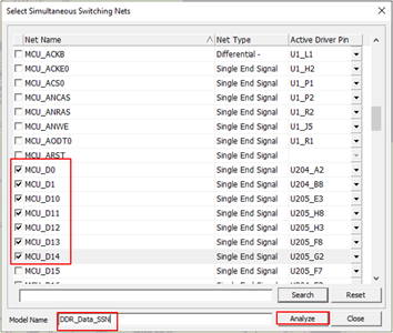 The Power Integrity Analyzer opens. PollEx automatically finds the power net that supplies power to the selected signal nets.