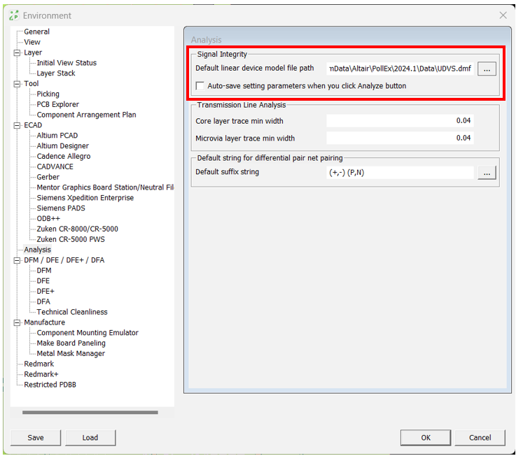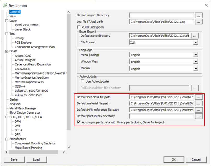 Default part library directory: you can set default UPF directory path. The