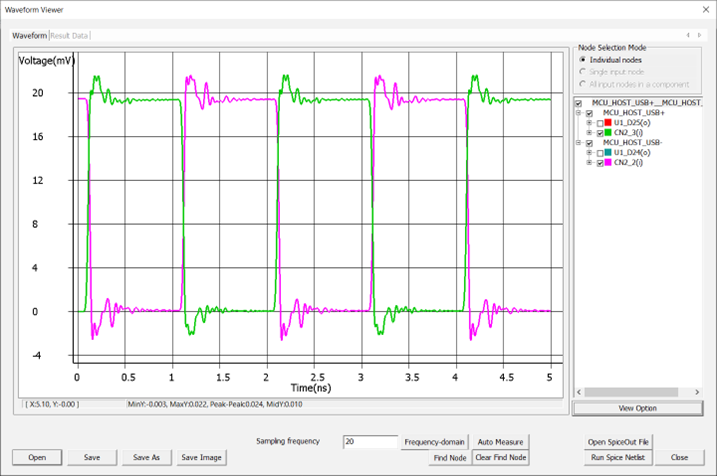 The following is the waveform result of a differential line with an IBIS-AMI model applied.