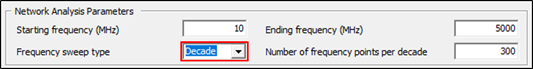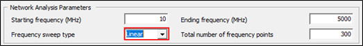 - Network Analysis Parameters: specify the start and end frequencies, total