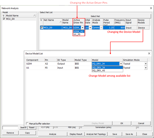 selected for the output and input pins. Users can change the device model selection
