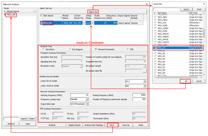 The Analysis > Signal Integrity > Network Analysis menu enables user to execute three