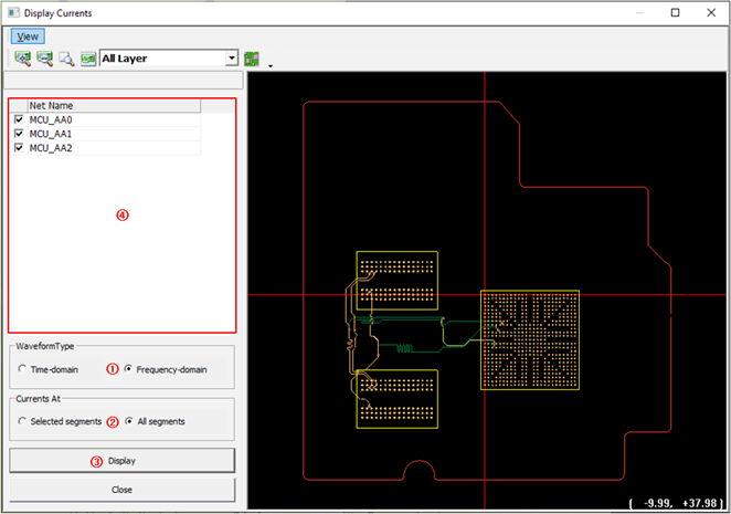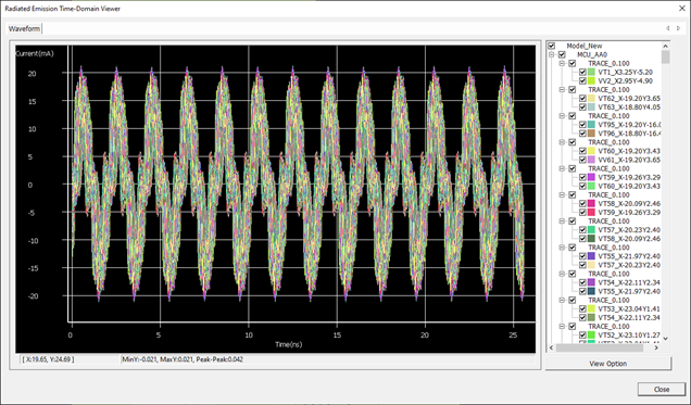 Radiated Emission Frequency-Domain Viewer will be open and current of net will be