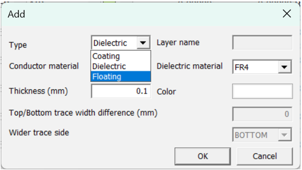coating, dielectric, signal, micro signal, power, ground, and floating layers. Each