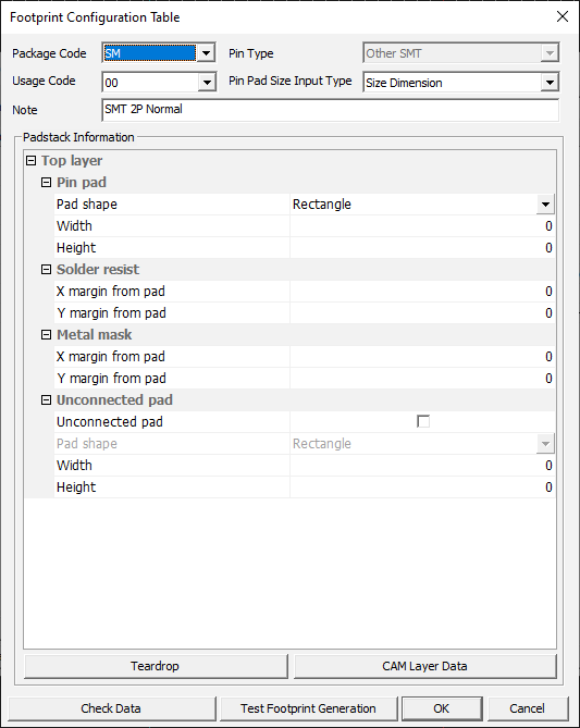 Case 3: Other SMT Type In the Footprint Configuration Table Editor, click Add. For Package Code, select SM. Figure 1.