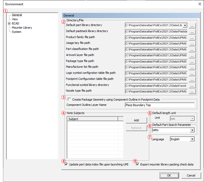- Update part data index file upon launching UPE: Select the check box to update part data index file upon launching UPE.