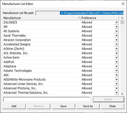 Manufacture List Editor