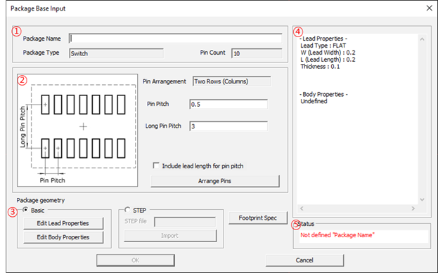 - STEP: Import a STEP format file for package lead shape. Click Import and select the STEP file to import.