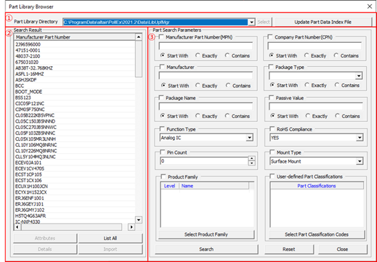 - Part Library Directory: Display the part library folder path.