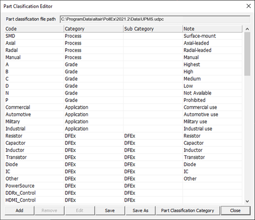 Part Classification Editor