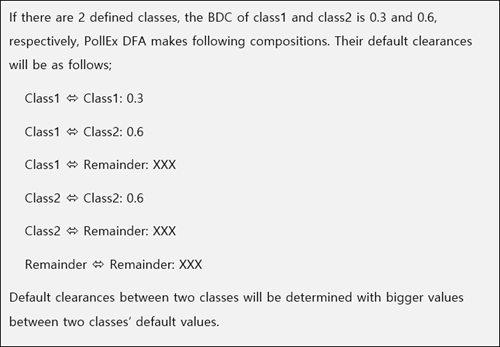 This item checks the clearance between component body and body. The measurement base is 3D package’s body surface to another components’ body surface. Checking is performed for the classes’ compositions which are automatically created by PollEx DFA. Applied clearance values are BDC (Body Default Clearance) values that you input while making each class. You also can change this value.