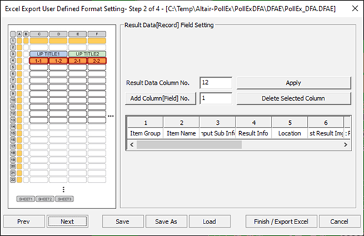 - Result Data Column No.: This section shows the columns corresponding to the test result. You should remember the contents of the report to record and predict the type and number of results. For example, If you need 10 columns, enter 10 and click Apply.