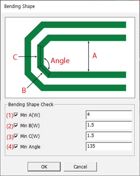 - Serpentine Angle Check: Required minimum trace angle.