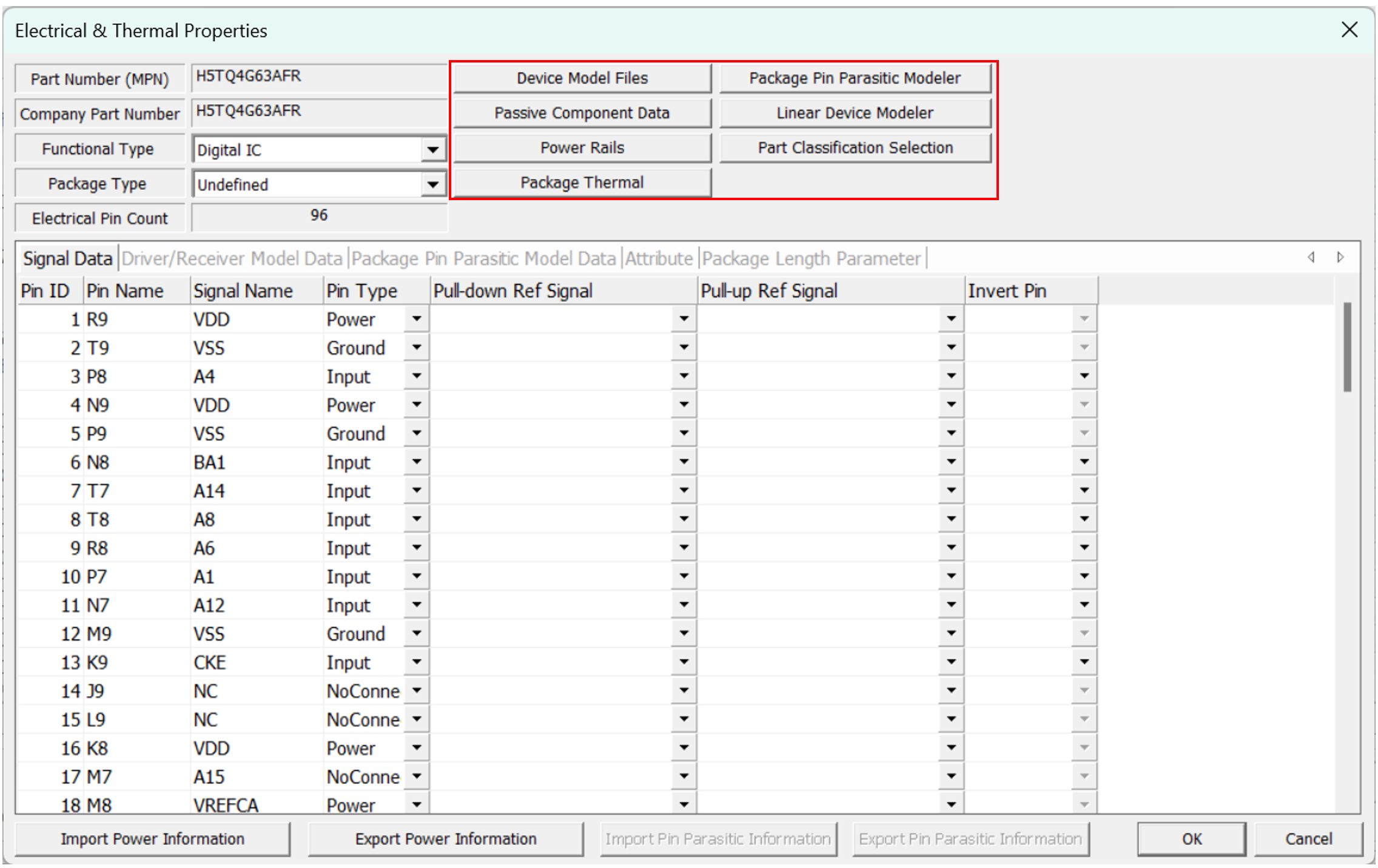 - Device Model File: Specify/register the IC models in the form of IBIS,