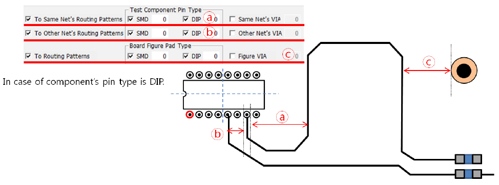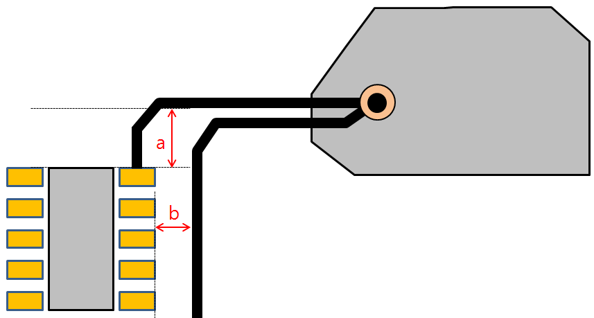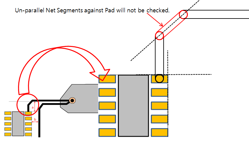pad connected net segment. Figure 3. In Figure 3, even though the result of measuring a and b