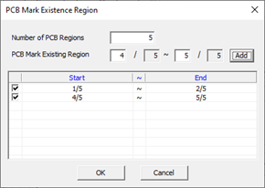 - PCB Mark Existing Region: Set the region where the PCB mark is located.