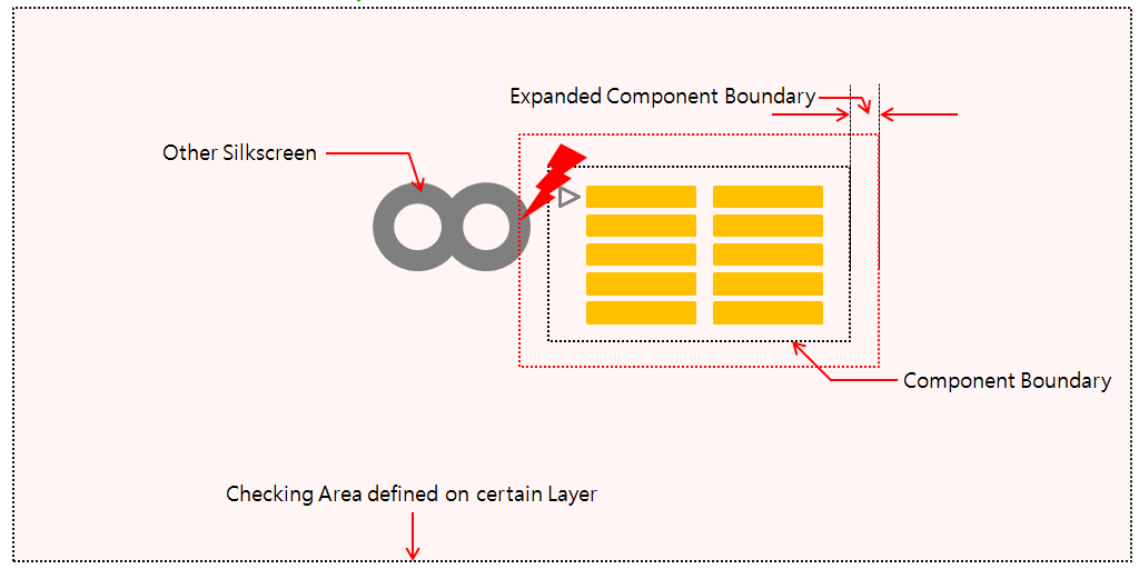 - Check Overlapping between Silkscreen and given Area: Within the checking area, check the overlap between the silkscreen and component boundary.